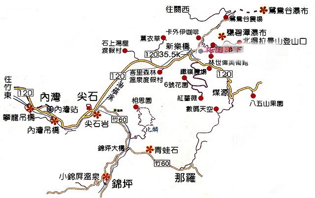 【自行開車建議】*不用爬山路.就有山林的享受*N:24.737506 E:121.25554(不要跑關西路線,請走內灣路線喔)竹120縣道34.5k處左轉新樂大橋往前700公尺
